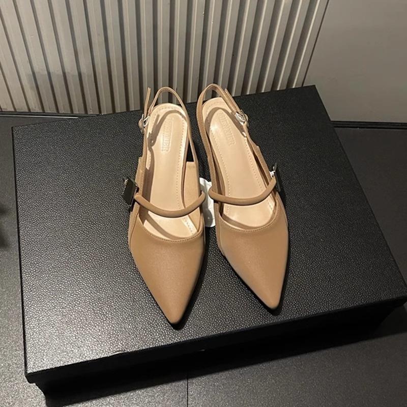 Fashion thick heel temperament pointed French fairy Roman bag head sandals women's skirt 2025 summer new