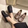 Leather loafers women's 2025 winter new velvet warm round head retro British fashion single shoes versatile shoes