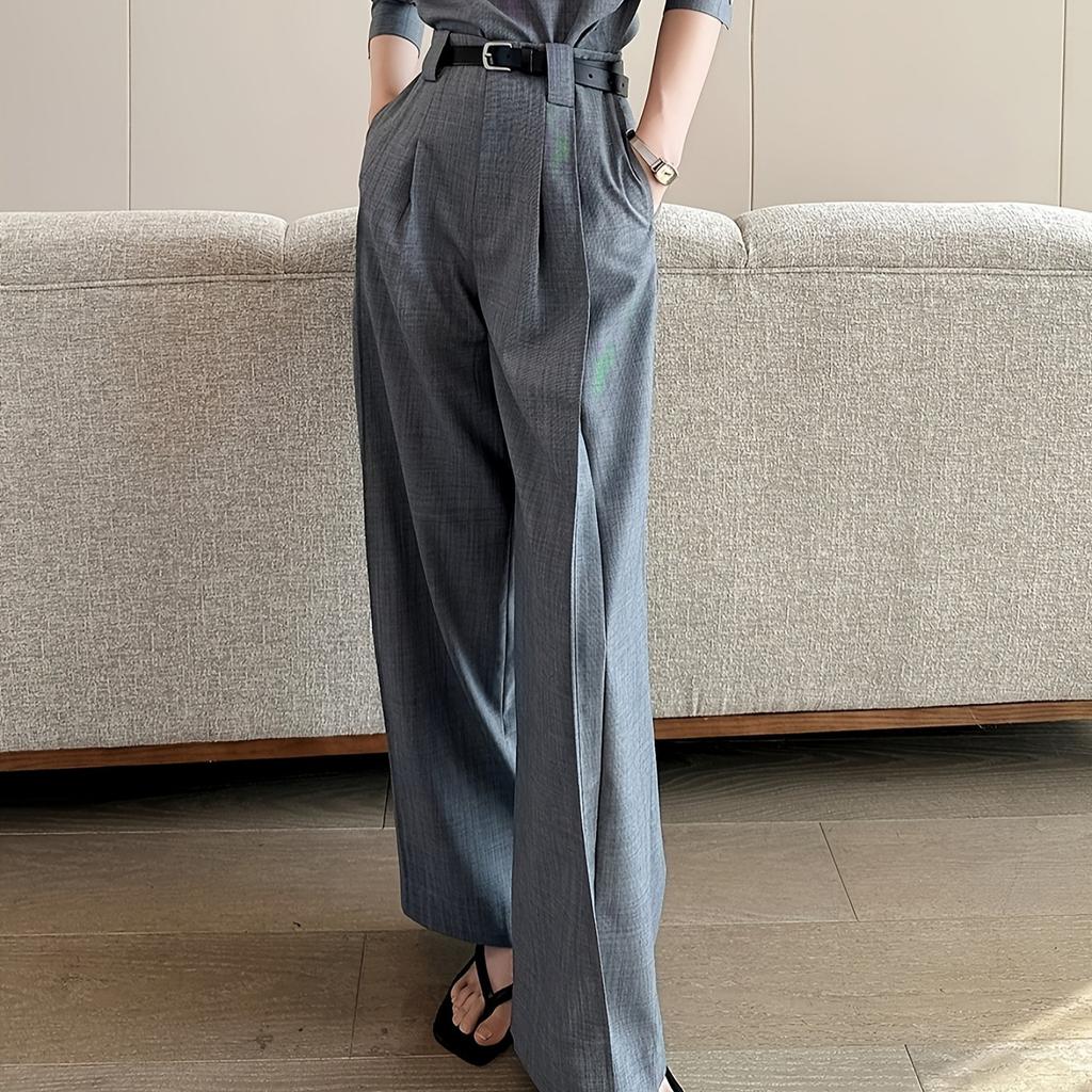 High-waisted Casual Slimming Wide-leg Grey Suit Pants for Women In Spring and Autumn