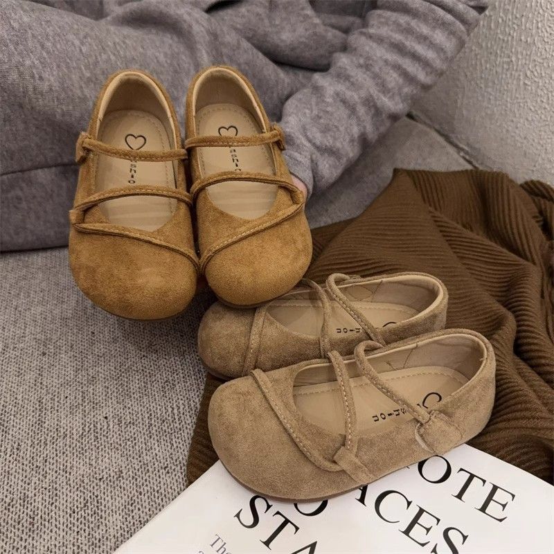 Girls Moccasins Soild Color Retro Kids Flats Round Toes Non-slip 2025 New Children Leather Shoes Korean Style Soft Sole Chic
