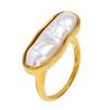 Descubra a elegância do anel de pérolas de tira longa, confeccionado em aço inoxidável e adornado com uma pérola barroca lustrosa, oferecendo um charme e sofisticação atemporais.