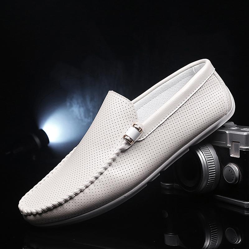 Lightweight Men's Casual Shoes 2025 Summer Leather Penny Loafers Men Moccasins Hollow Out Slip on Flats Boat Mens Driving Shoes