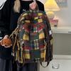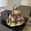 Winter new fashion woolen plaid women's double back schoolbag backpack