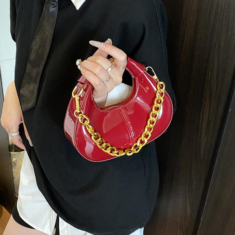Bolsa mensageiro mini de corrente versátil e moderna de primavera e verão, bolsa crescente portátil de nicho sofisticado para mulheres