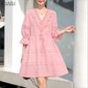 ZANZEA Women Classic Collar Loose Casual 3/4 Sleeve Print Shirt Dress