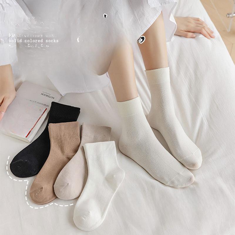 White Socks, Women's Short Cotton Socks, Summer Postpartum Socks, Short Socks, Thin Mid-calf Socks, Solid Color Versatile Socks