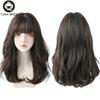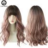 7jhh Perucas Peruca Azul de Onda Profunda com Franja para Mulheres Cabelo Longo Castanho Omber em Camadas Resistente ao Calor Cosplay Festa Peruca Sintética