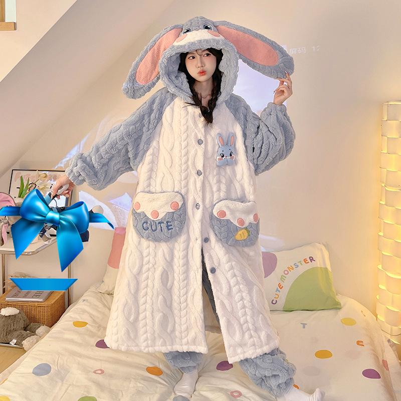 Outono e Inverno Novo Pijama Fofo com Capuz Castorzinho Veludo Coral Pijama de Inverno Feminino Conjunto de Pijama Feminino