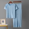 Conjunto Versátil de Verão 2025 de Manga Curta com Top de Tricô + Saia Média e Longa de Meio Corpo