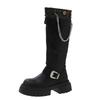 2024Platform Belt Buckle But Knee High Boots Woman Autumn Thick Heel Western Cowboy Knight Botas Patchwork Versatile Women Shoes