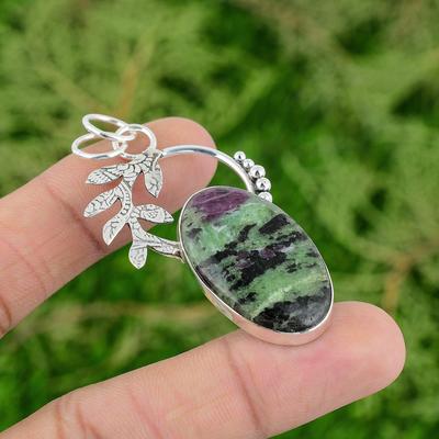 Pingente de pedra preciosa natural de rubi zoisita, prata esterlina 925, joias com pingente, joias com pingente de prata feitas à mão para presente, presente de Páscoa