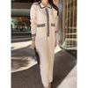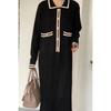 Vestido Tricotado Coreano Chic Retrô com Lapela Contrastante Feminino Elegante com Borda Pequeno Fragrante Plissado Solto Saia Longa