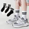 Meias Tubulares Esportivas Casuais Femininas de Listras com Duas Barras Estilo Preppy para Primavera e Outono