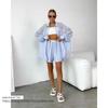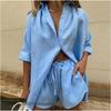 European and American New Long sleeve Shirts Shorts Fashion Casual Set Casual Shirt and Shorts Set