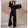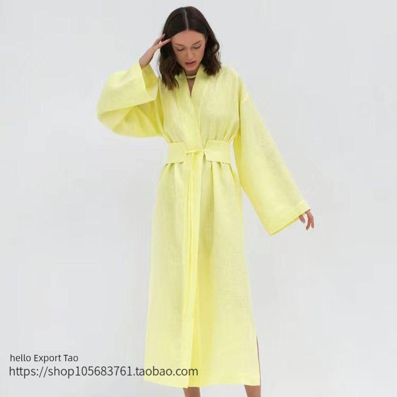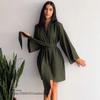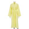 Fashion Loose Pure Color Vacation Style Long Dress Waist-Controlled Lace-up Split Dress Loose Lace up Dress