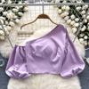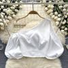 Chic Sneaky Design One-Shoulder Cold-Shoulder French Tops Shirt