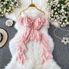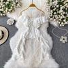 French style Temperament Frill off-Shoulder Sling Top Women 2025 New Irregular Jacquard Slim fit Slimming Shirts
