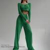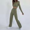 Fashion Style Short Top and Trousers Fashion Sunken Stripe Knitting Suit Knitted Top and Pants Set