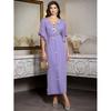 New Arrival Middle East Lilac Purple Horn Cuff Hand Sewing Drill Dress V-Neck Flared Sleeve Dress