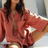 Western Style New Summer Long sleeve Shirt Shorts Loose Set Home Wear Shirt and Shorts Set