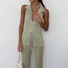Western Style Summer Casual Pleat Sleeveless Vest High Waist Trousers Set Tank Top and Pants Set