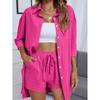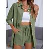 Fashion Style Fashion Single-Breasted Shirt Shorts Pure Color Casual Loose Outfit Shirt and Shorts Set