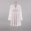 Fashion Dignified Hollow Jacquard Lantern Sleeve Dress Sexy V-neck Lantern Sleeve