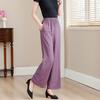 Simplicity Casual Summer Pants Women's Solid Elastic Waist Pockets Thin Style Elegant High Waist Loose Wide Leg Cropped Trousers