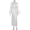 Fashion Wind Feather Long Sleeves Cardigan Ice Silk Dress Self-Tie Dress Cardigan Ice Silk Dress