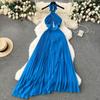 Sanya Seaside Holiday Wear Sexy Open Back Scheming Hollow-out Halter Dress Women's Pleated Long Pleated Skirt