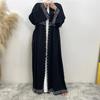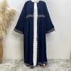 New Arrival Middle East Pure Color Hot Drilling Beading Shoelace Cardigan Robe Dress Lace up Cardigan Dress