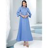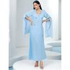 New Arrival Light Blue Long Cuff Sewing Glass Rhinestone Dress Hand Sewn Diamond Dress
