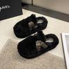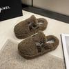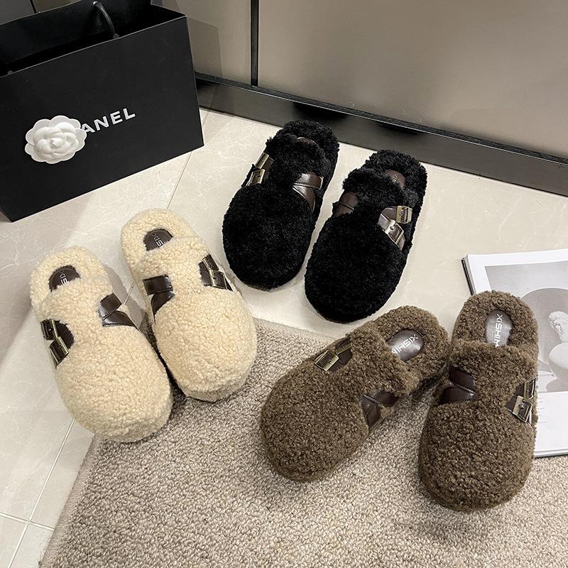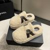 Outono e inverno femininos novos fundo grosso elevado veludo quente antiderrapante estribos confortáveis pelúcia sapatos únicos chinelos