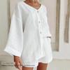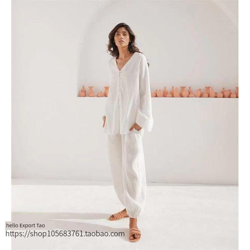 Fashion Style New Arrival Casual Loose Top Two-Piece Pants Homewear V-neck Top Pants Suit