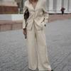 Fashion Style Fashion Satin Strap Suit Outwear Loose Pants Suit V-Neck Top and Pants Set