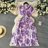 Elegant Dress Women's Summer Dress New Arrival Elegance Print Shirt Skirt Stylish Pocket Waist-Tight Single-Breasted Dress