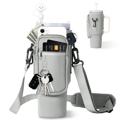Bolsa de transporte para garrafa de água ajustável com manga de copo e bolsos, suporte para copo com absorção de choque para copo de 40 onças