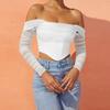 Sweet Perspective Mesh Fishbone Top Net Yarn Fishbone Perspective Short Top