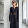 Fashion Loose Bronzing Shoelace Top and Trousers Suit Loose Lace up Top and Pants Set