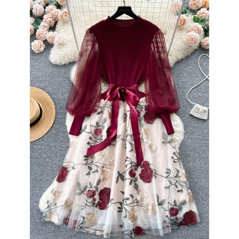 Accessible Luxury Socialite Style Mesh Cinched Fairy Dress Embroider