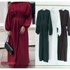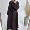 New Arrival Middle East Pure Color Loose Lace-up Dress Solid Color Loose Lace up Dress