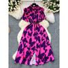 Mild Luxury Retro Summer Shoelace Waist Trimming Printing Dress