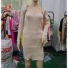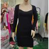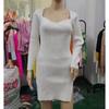 Fashion Wind Square Collar Long Sleeve Slim-Fit Hip-Wrapped Short Dress Slit Knitting Dress Slit Knitted Dress