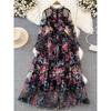 Spring and Autumn Ladies Long Sleeves A- line Dress Mesh