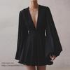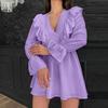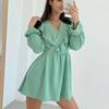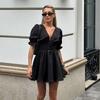 Fashion Elegant Ruffle Dress V-neck Puff Sleeve A- line Skirt V-neck Bubble Sleeve Dress