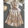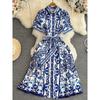 Vintage Single-Breasted A- line Pleated Dress Short Sleeve
