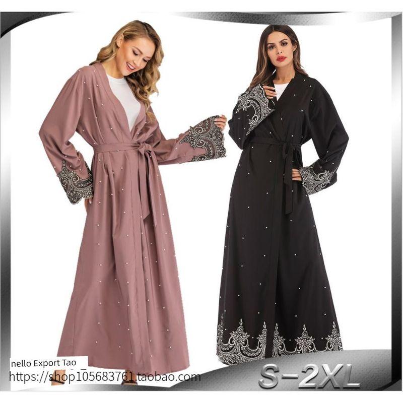 Muslim Long Sleeve Embroidered Nail Bead Robe Cardigan Dress