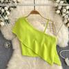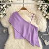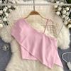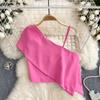 Sweet and Spicy Small Top Women's Stylish One-Shoulder Cold-Shoulder Single-Side Sling Silm Short Crop Top Versatile Holiday Small Shirt Fashion