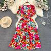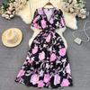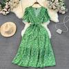 Chic South Korea Bubble V Neck A- line Dress Short Sleeve