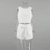 Fashion Wind Fashion Cotton Linen round-Neck Vest Shoelace Shorts Two-piece Set Sexy Top and Pants Set